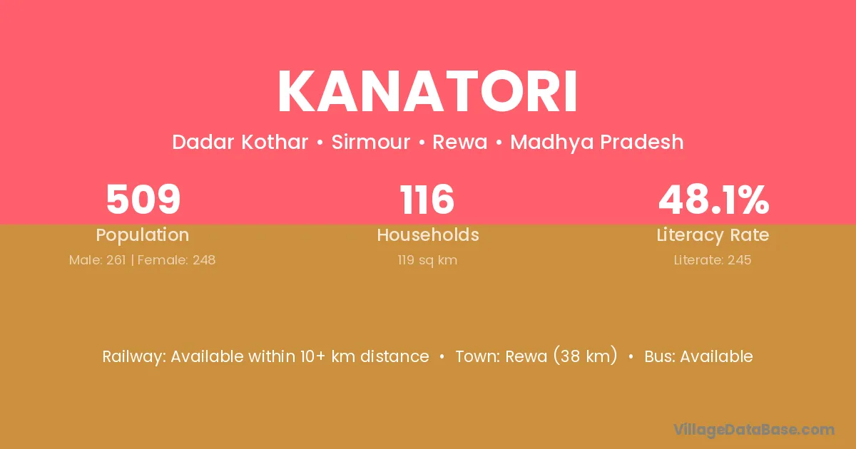 Rewa (38 km) is the nearest town to Kanatori village for major economic activities and is located approximately 38 km away.