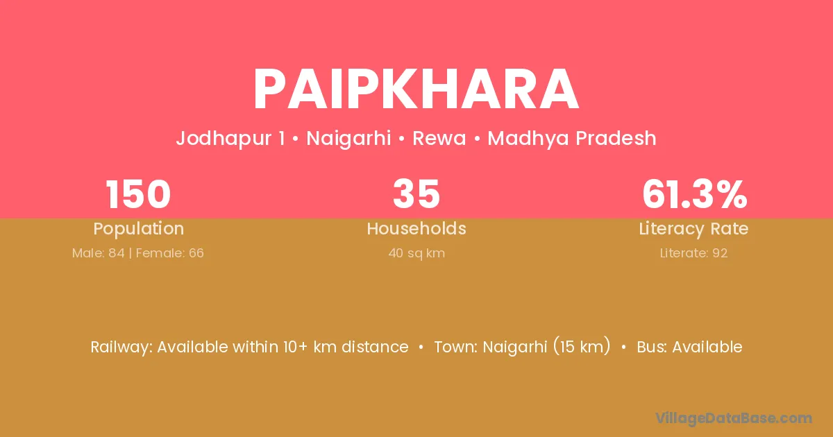 Sirmour (20 km) is the nearest town to Paipkhara village for major economic activities and is located approximately 20 km away.