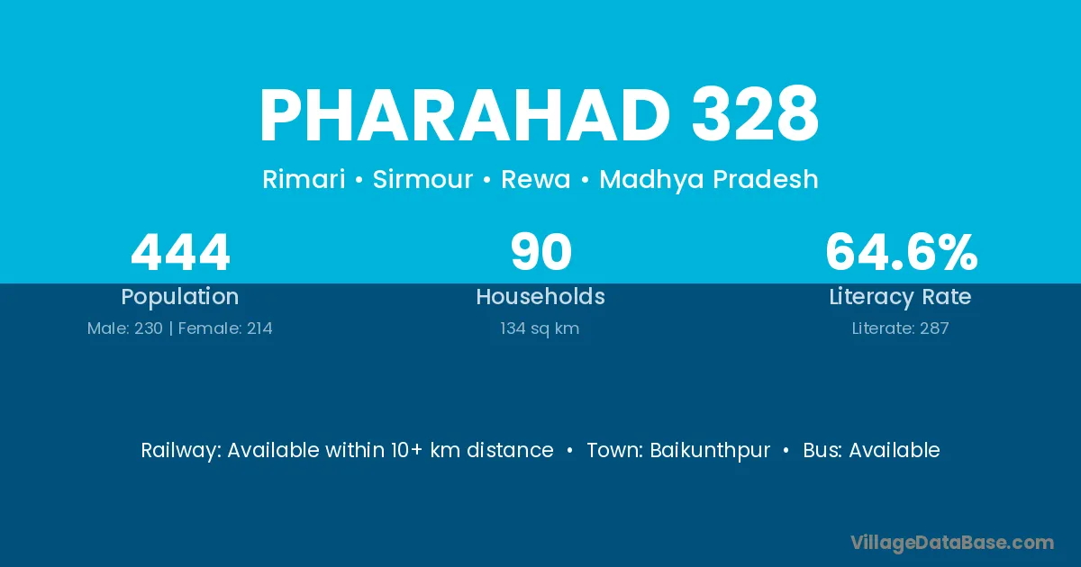 Pharahad 328 village has a total population of 444 people, of which 230 are males and 214 are females.