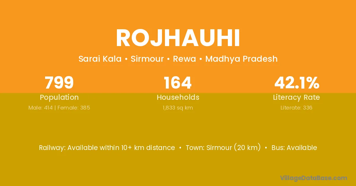 Sirmour (20 km) is the nearest town to Rojhauhi village for major economic activities and is located approximately 20 km away.