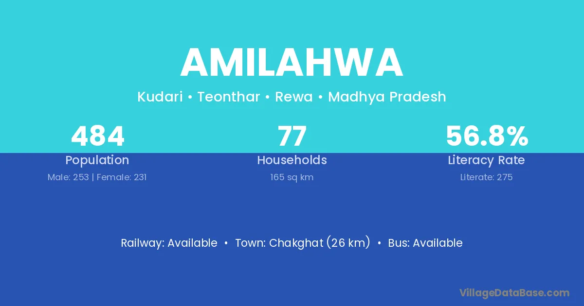 Chakghat (26 km) is the nearest town to Amilahwa village for major economic activities and is located approximately 26 km away.