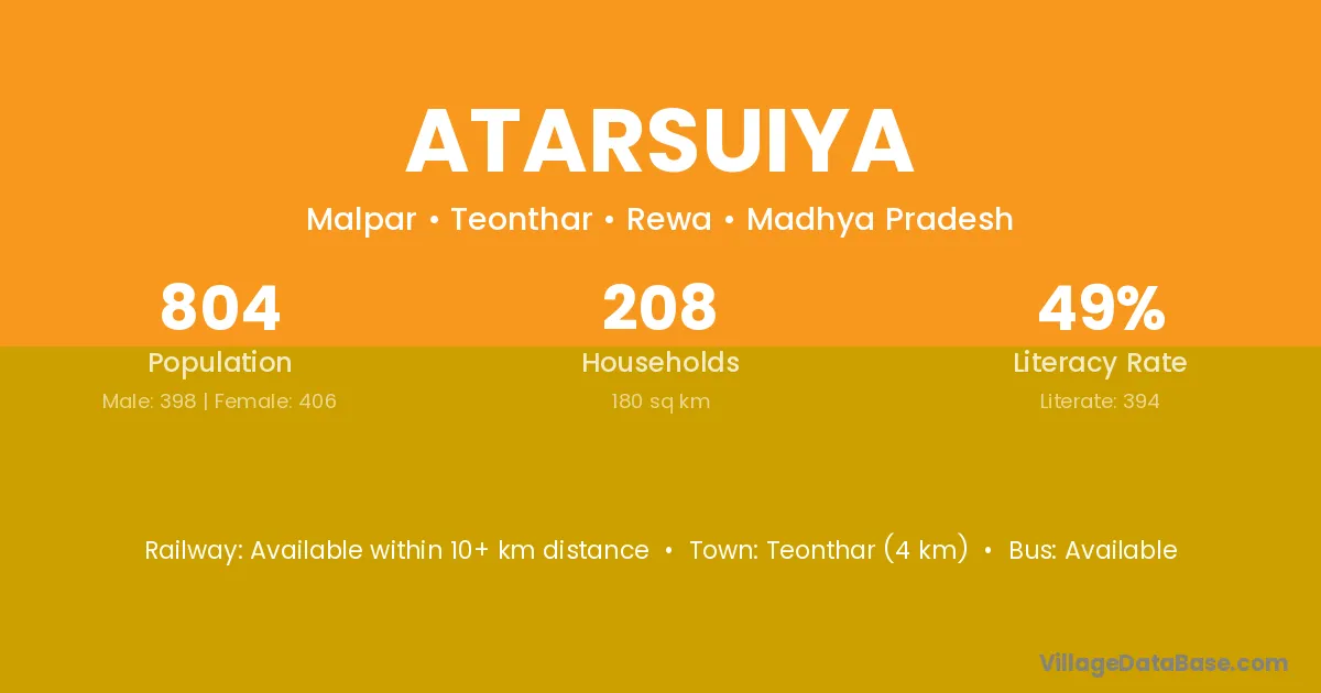 Teonthar (4 km) is the nearest town to Atarsuiya village for major economic activities and is located approximately 4 km away.
