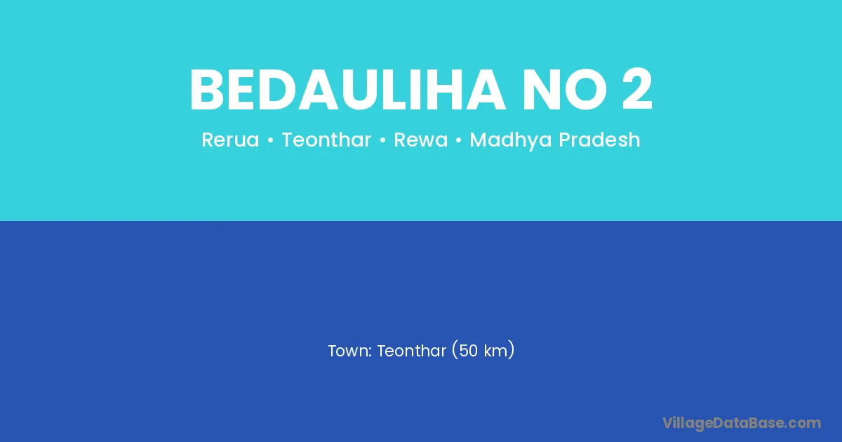 Teonthar (50 km) is the nearest town to Bedauliha No 2 village for major economic activities and is located approximately 50 km away.