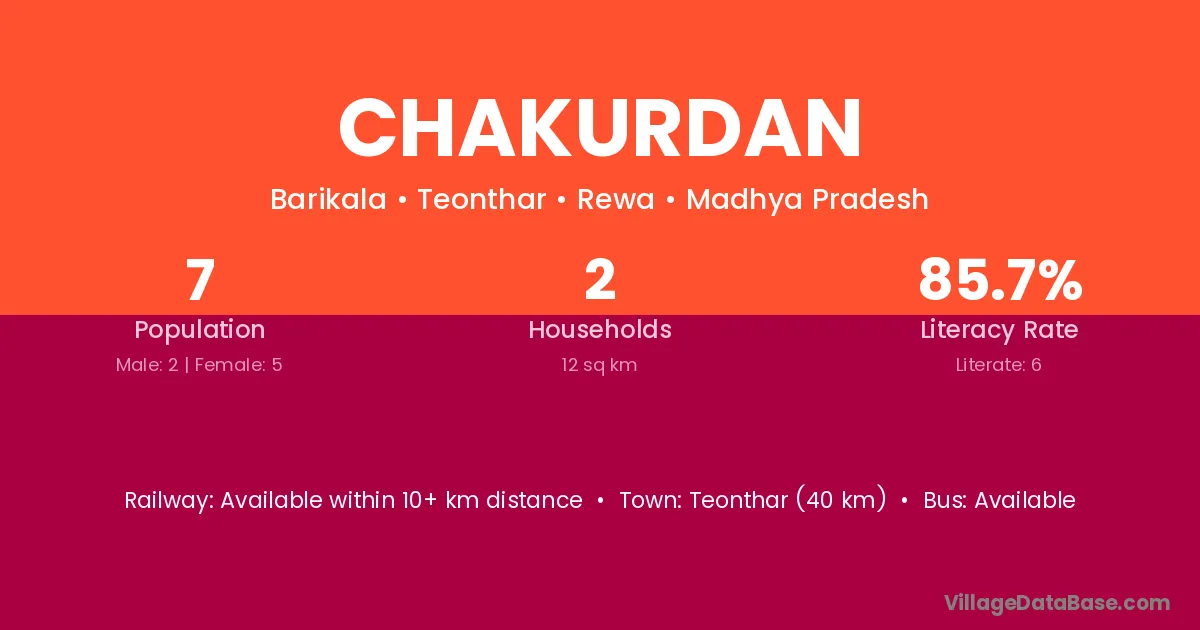 Teonthar (40 km) is the nearest town to Chakurdan village for major economic activities and is located approximately 40 km away.