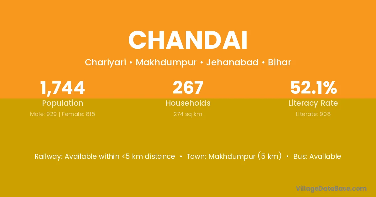 Chakghat (2 km) is the nearest town to Chandai village for major economic activities and is located approximately 2 km away.