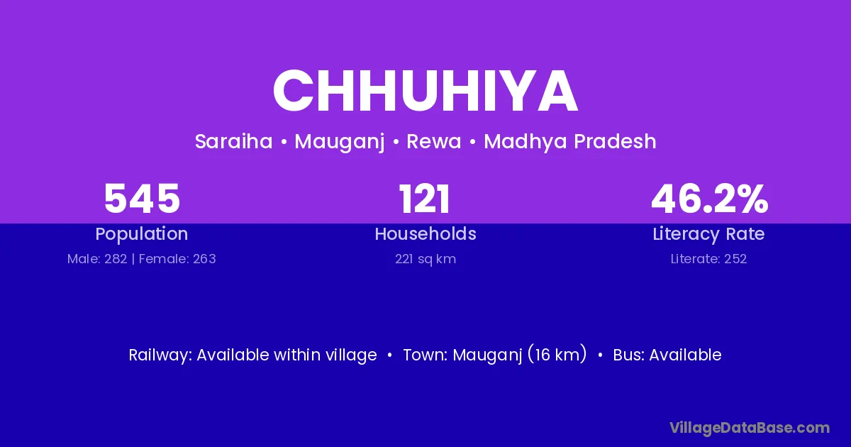 Teonthar is the nearest town to Chhuhiya village for major economic activities