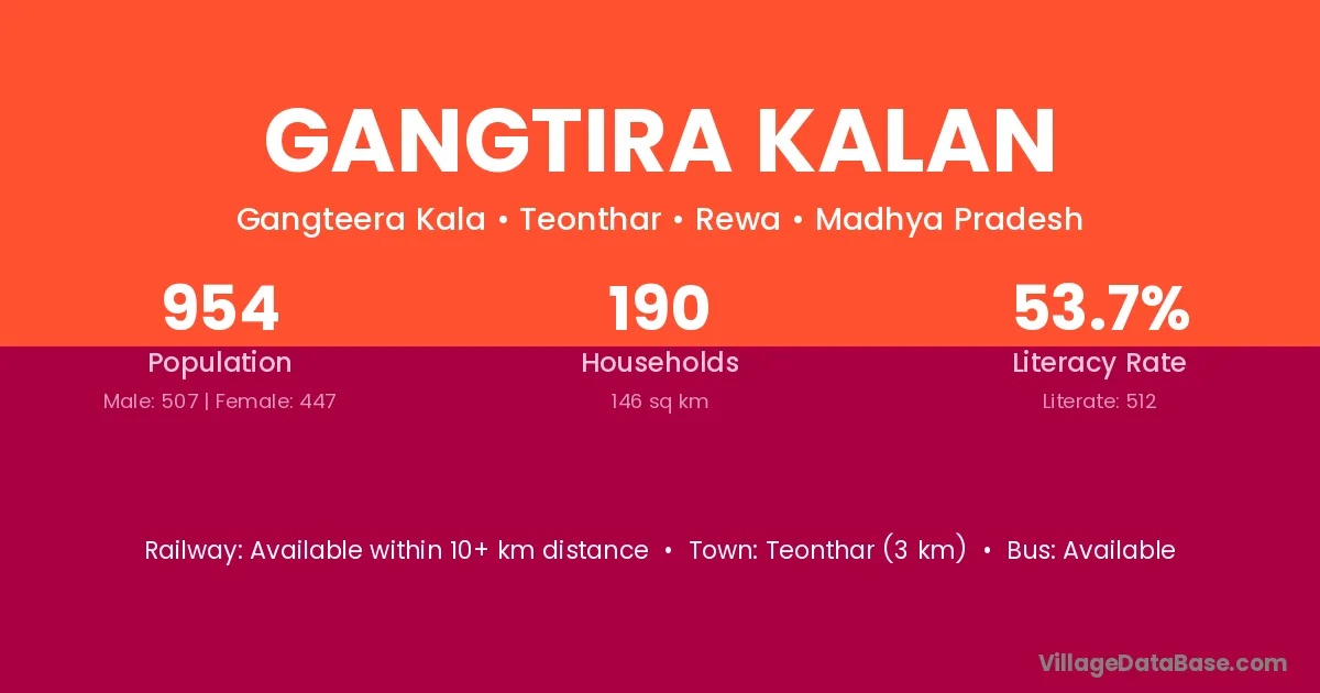 Teonthar (3 km) is the nearest town to Gangtira Kalan village for major economic activities and is located approximately 3 km away.