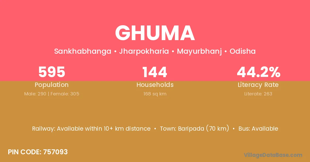 There are approximately 558 households in Ghuma village.