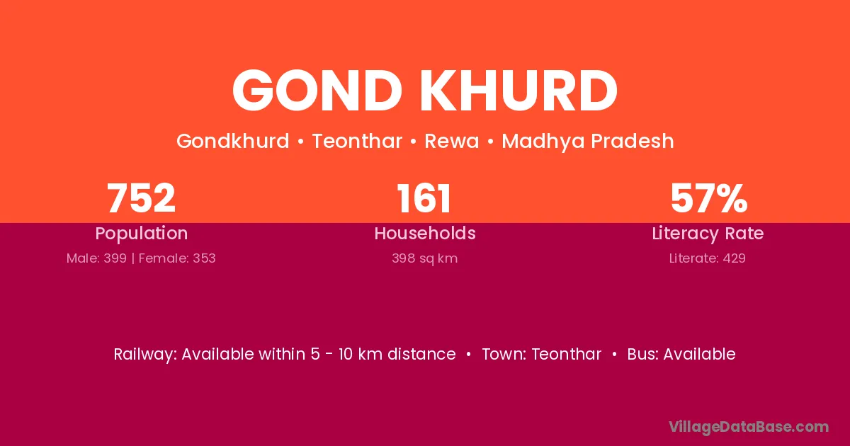 Teonthar is the nearest town to Gond Khurd village for major economic activities