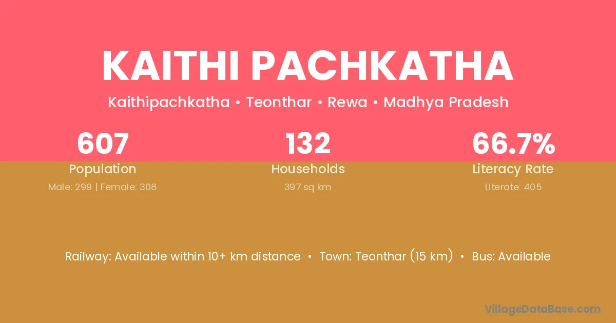 Teonthar (15 km) is the nearest town to Kaithi Pachkatha village for major economic activities and is located approximately 15 km away.