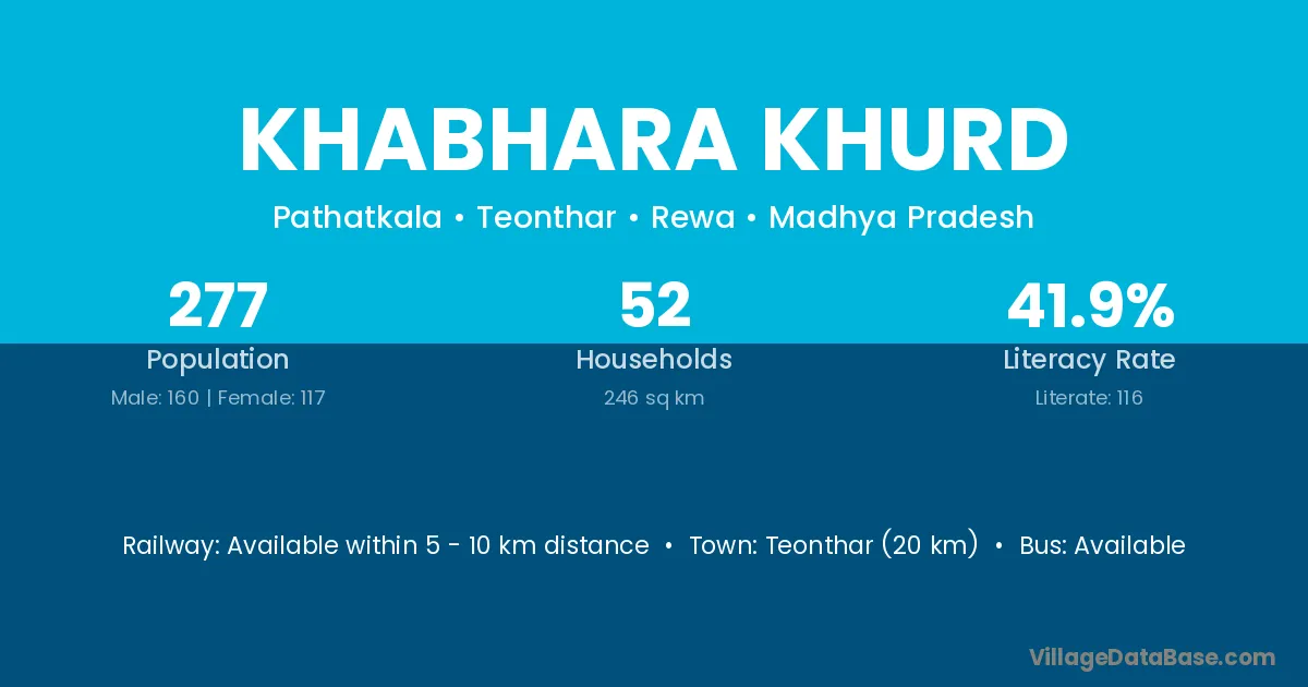 Teonthar (20 km) is the nearest town to Khabhara Khurd village for major economic activities and is located approximately 20 km away.