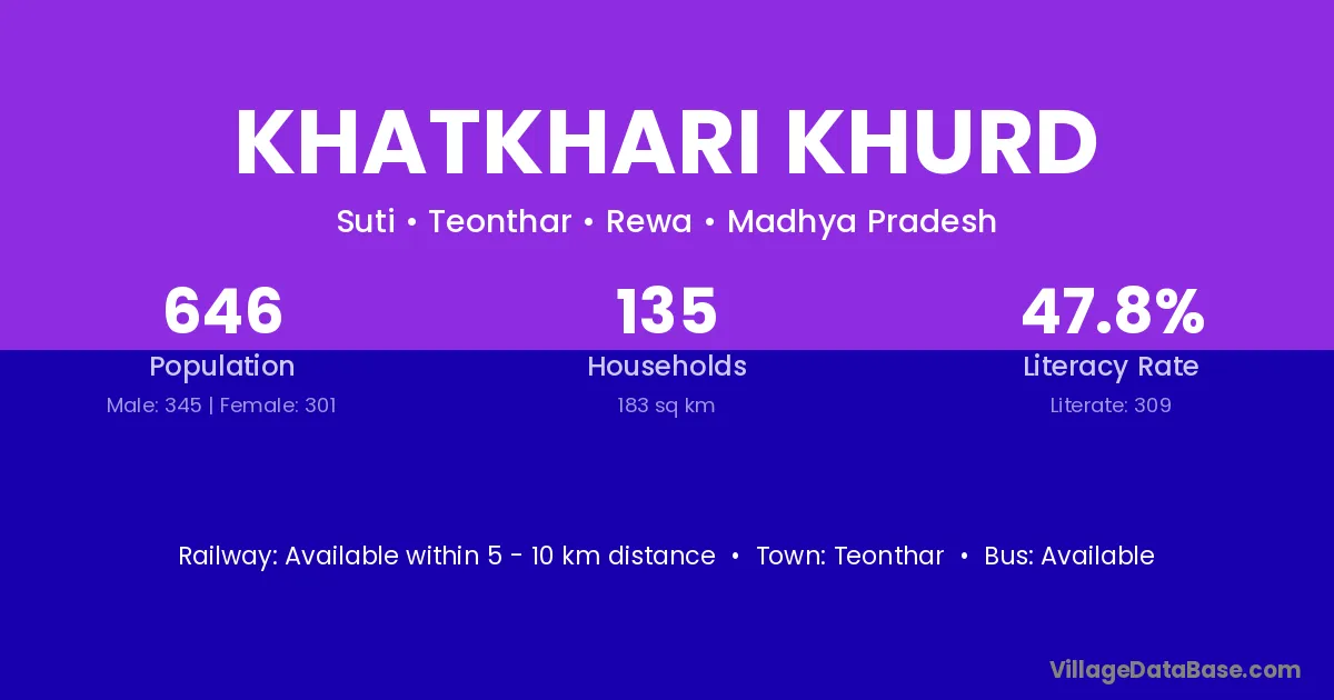 Khatkhari Khurd village has a total population of 646 people, of which 345 are males and 301 are females.