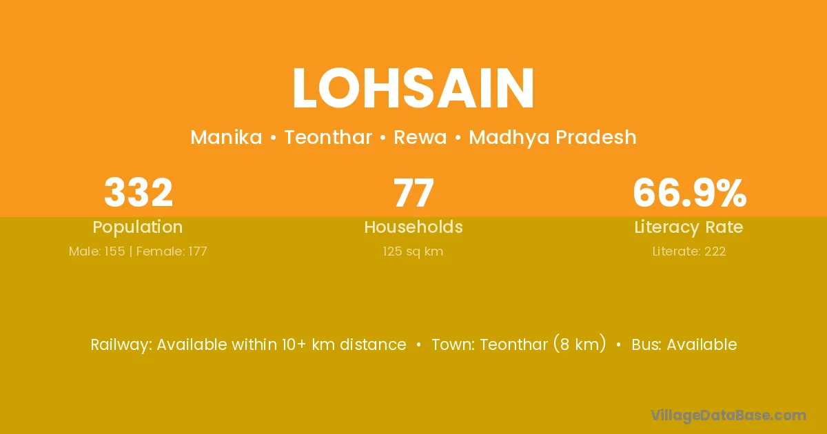 Teonthar (8 km) is the nearest town to Lohsain village for major economic activities and is located approximately 8 km away.