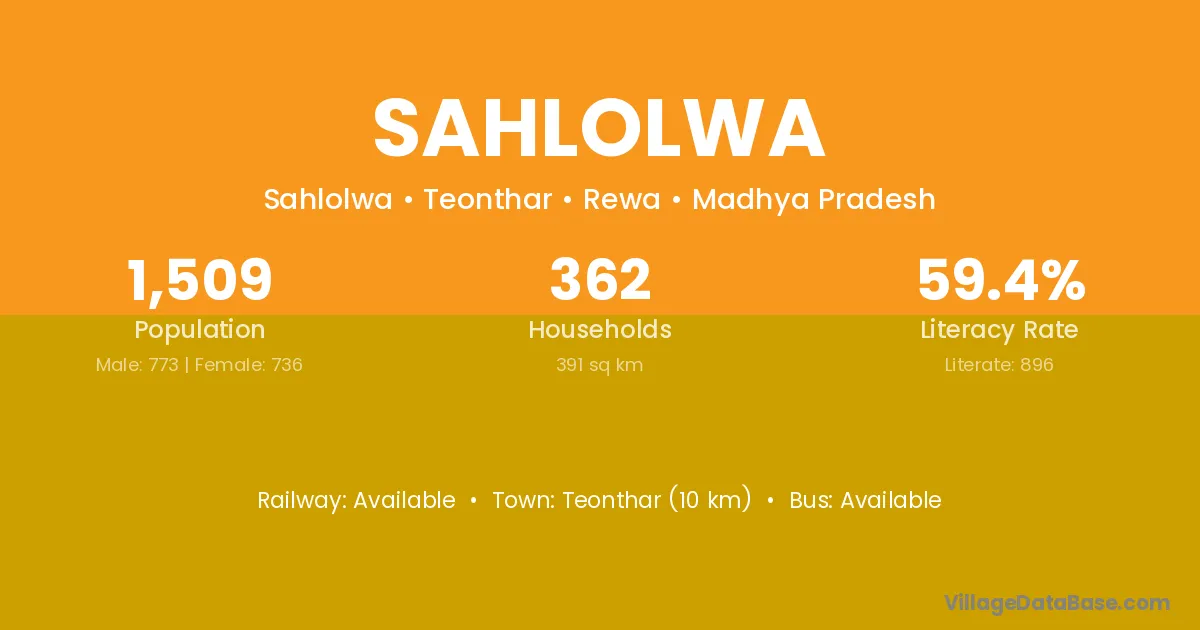 Teonthar (10 km) is the nearest town to Sahlolwa village for major economic activities and is located approximately 10 km away.