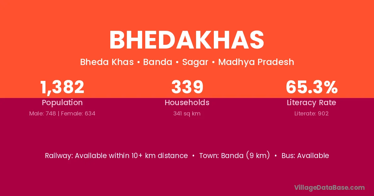 Banda (9 km) is the nearest town to Bhedakhas village for major economic activities and is located approximately 9 km away.