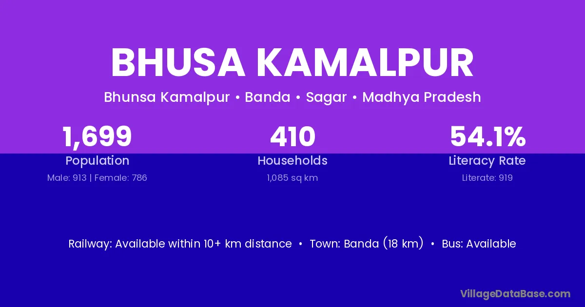 Banda (18 km) is the nearest town to Bhusa Kamalpur village for major economic activities and is located approximately 18 km away.