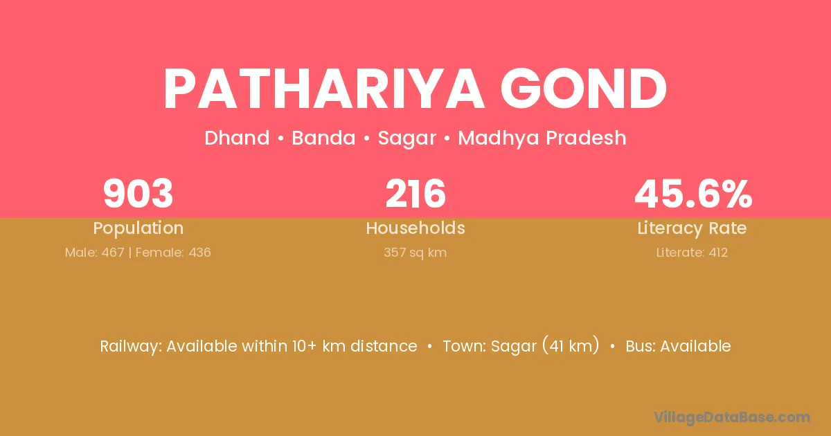 Pathariya Gond village has a total population of 903 people, of which 467 are males and 436 are females.