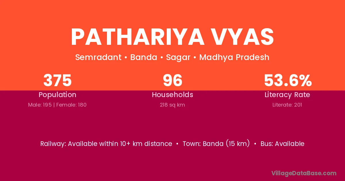 Pathariya Vyas village has a total population of 375 people, of which 195 are males and 180 are females.