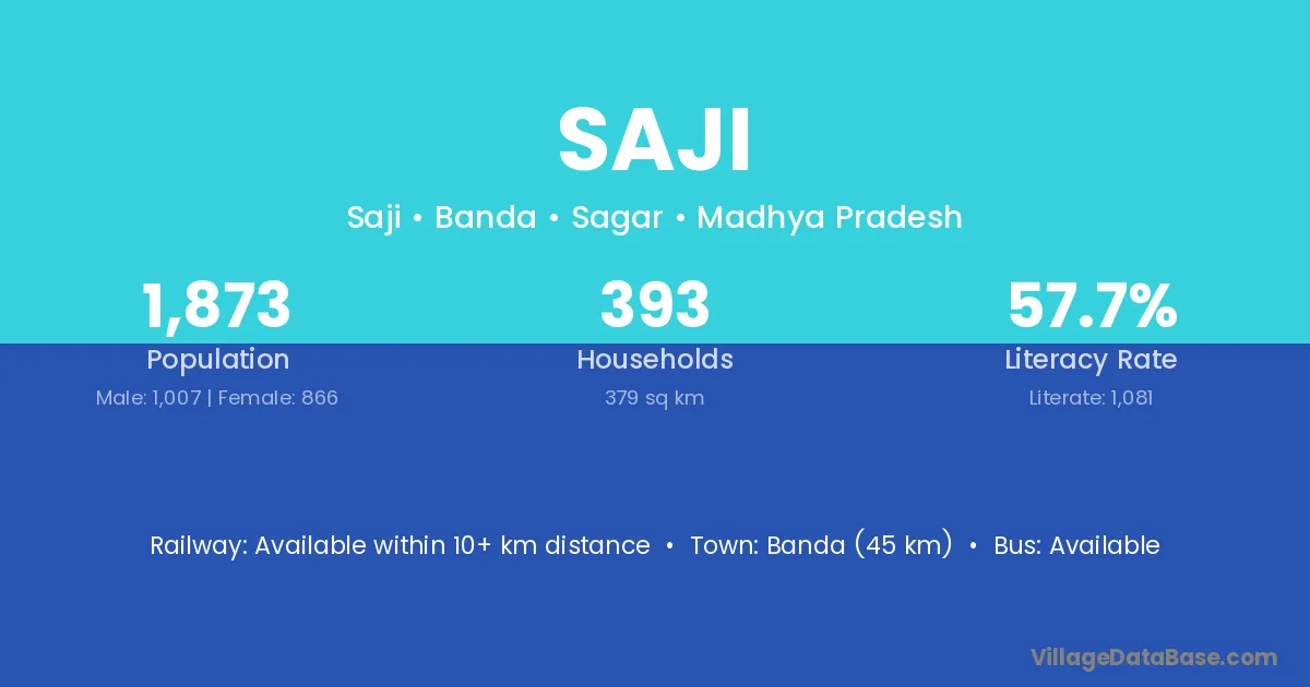 Banda (45 km) is the nearest town to Saji village for major economic activities and is located approximately 45 km away.