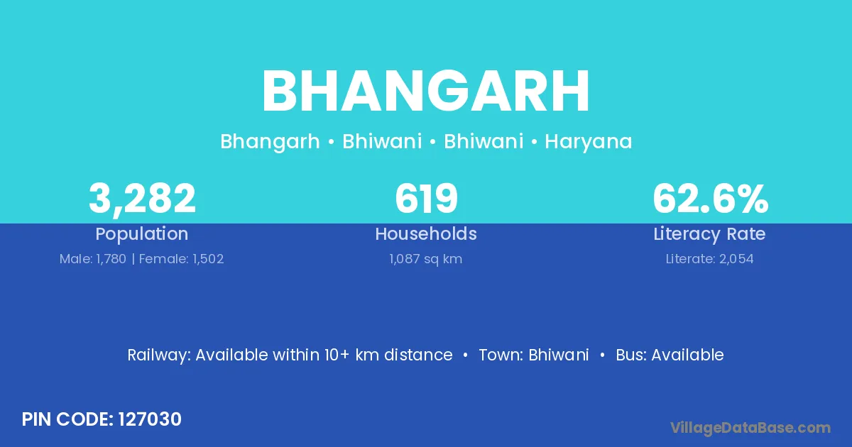 The literacy rate of Bhangarh village is 66.33%. Male literacy stands at 74.46% and female literacy at 58.11%.