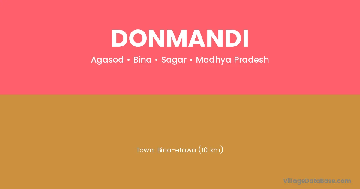 Bina-etawa (10 km) is the nearest town to Donmandi village for major economic activities and is located approximately 10 km away.