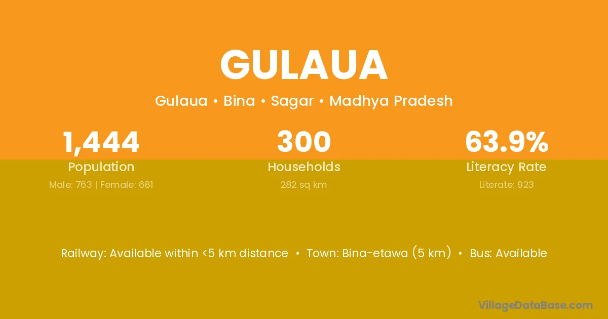 Gulaua village has a total population of 1,444 people, of which 763 are males and 681 are females.