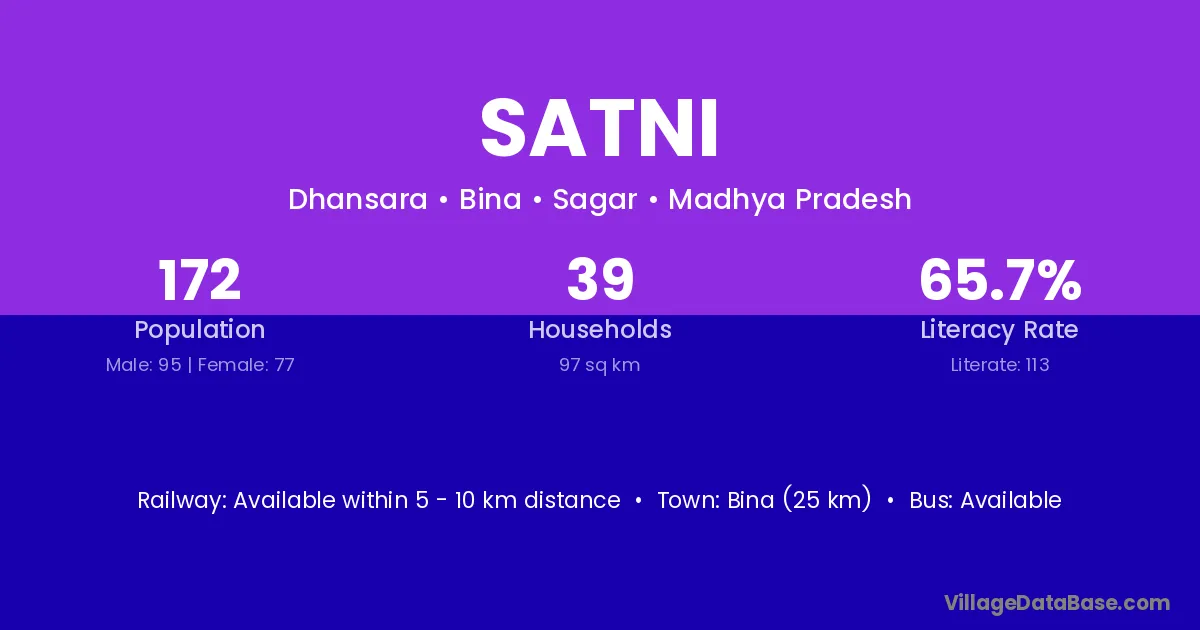 Bina (25 km) is the nearest town to Satni village for major economic activities and is located approximately 25 km away.