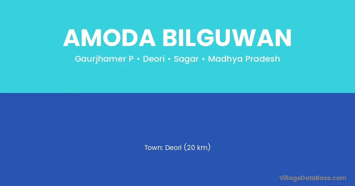 Deori (20 km) is the nearest town to Amoda Bilguwan village for major economic activities and is located approximately 20 km away.
