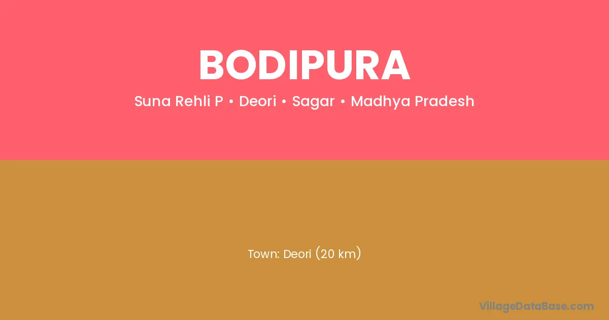 Deori (20 km) is the nearest town to Bodipura village for major economic activities and is located approximately 20 km away.