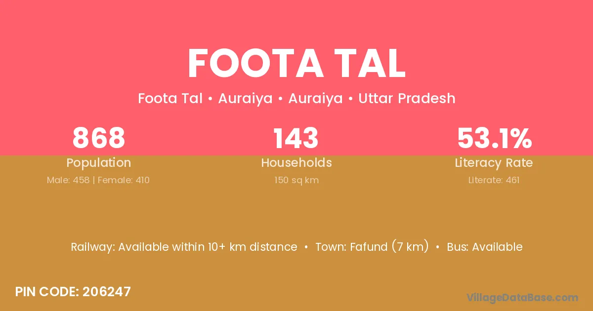 The literacy rate of Foota Tal village is 25.96%. Male literacy stands at 27.12% and female literacy at 24.44%.