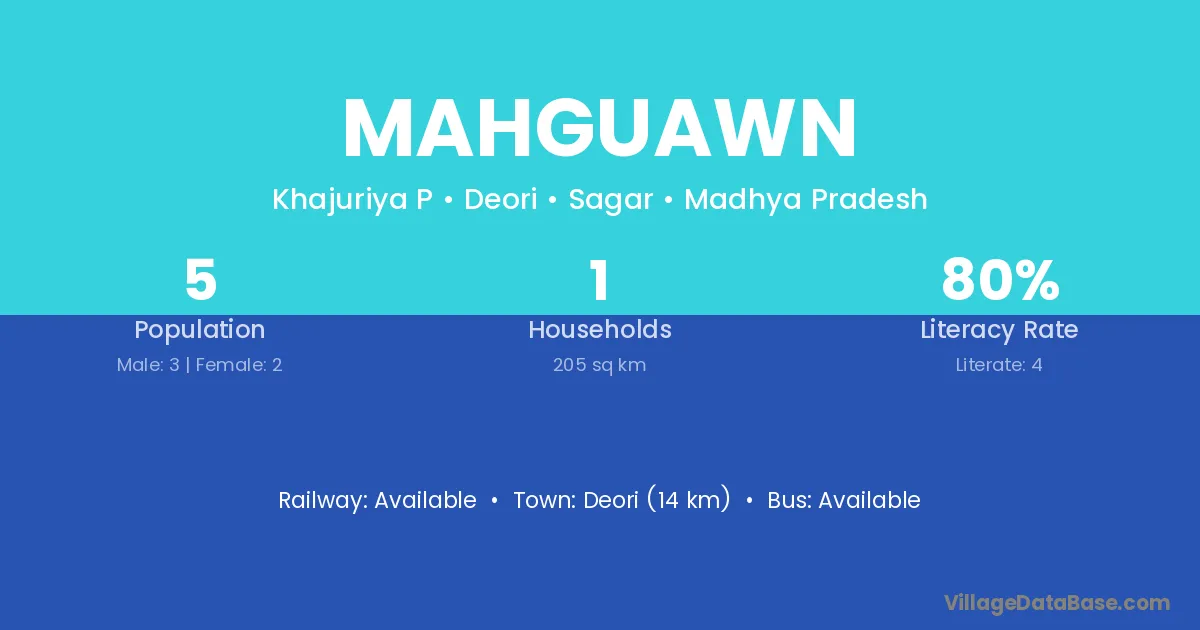 Deori (14 km) is the nearest town to Mahguawn village for major economic activities and is located approximately 14 km away.