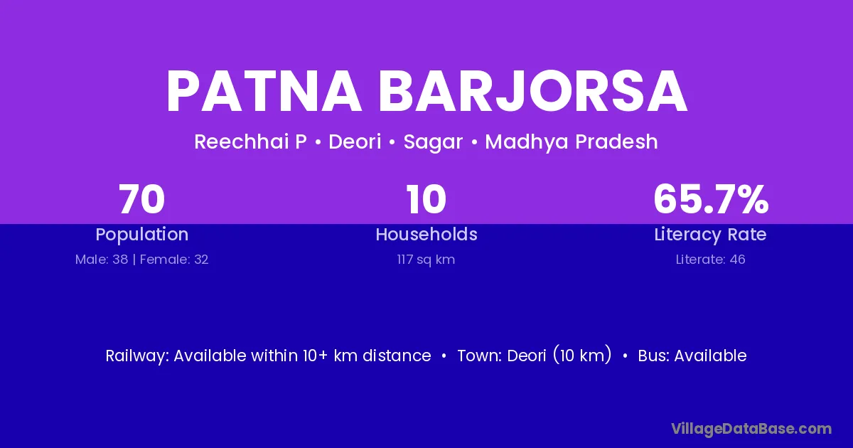 Deori (10 km) is the nearest town to Patna Barjorsa village for major economic activities and is located approximately 10 km away.