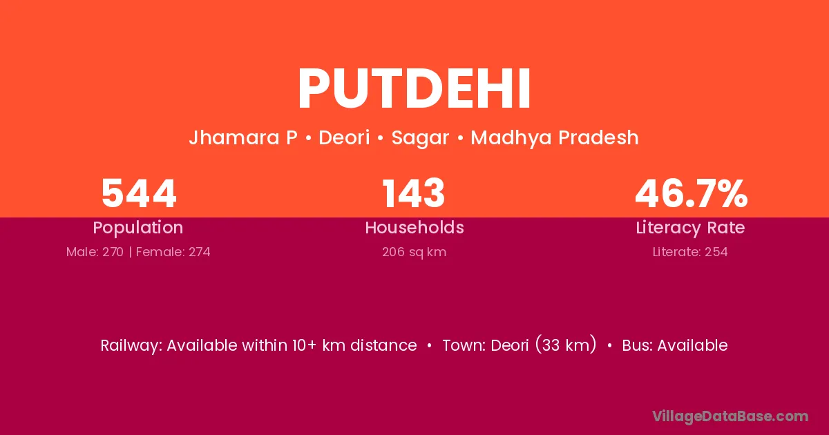 Putdehi village has a total population of 544 people, of which 270 are males and 274 are females.