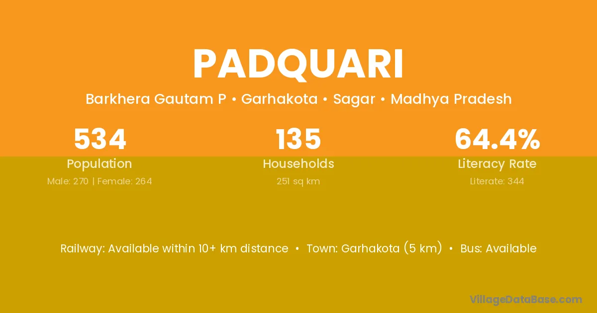Garhakota (5 km) is the nearest town to Padquari village for major economic activities and is located approximately 5 km away.