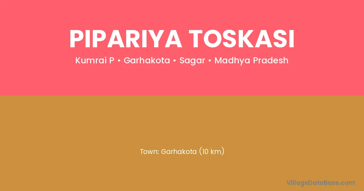 Garhakota (10 km) is the nearest town to Pipariya Toskasi village for major economic activities and is located approximately 10 km away.