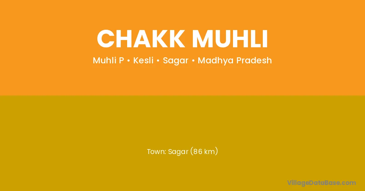 Sagar (86 km) is the nearest town to Chakk Muhli village for major economic activities and is located approximately 86 km away.