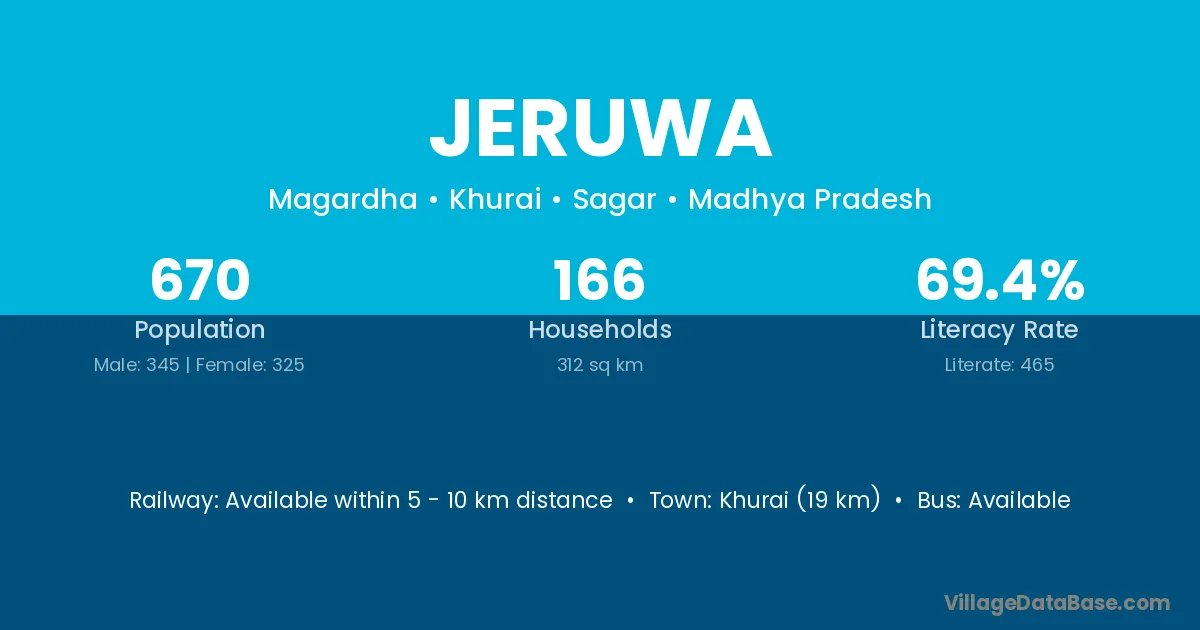 Khurai (19 km) is the nearest town to Jeruwa village for major economic activities and is located approximately 19 km away.
