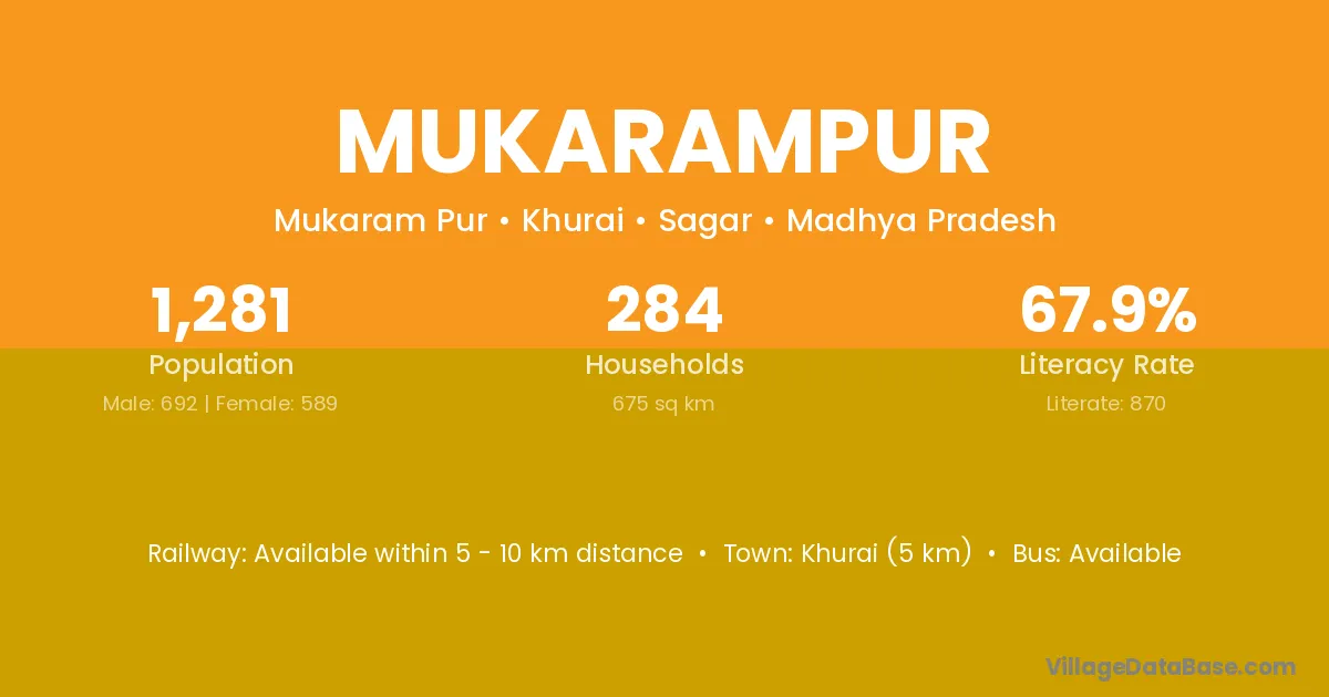 Khurai (5 km) is the nearest town to Mukarampur village for major economic activities and is located approximately 5 km away.