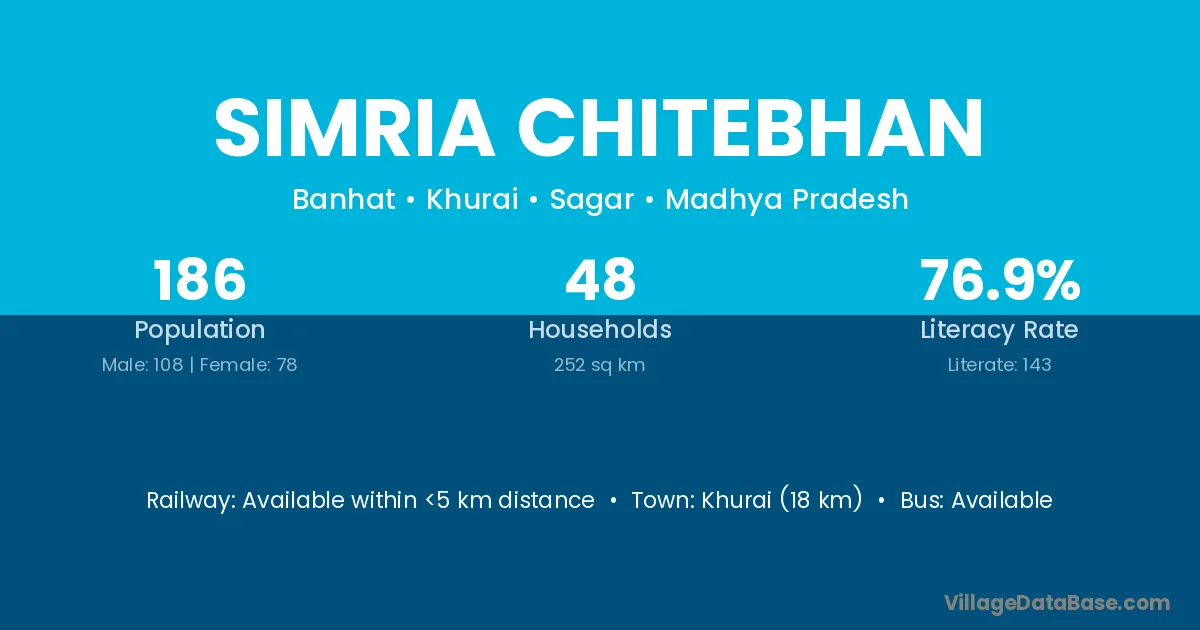 Khurai (18 km) is the nearest town to Simria Chitebhan village for major economic activities and is located approximately 18 km away.