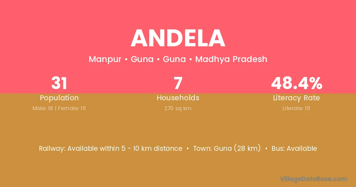 Khurai (36 km) is the nearest town to Andela village for major economic activities and is located approximately 36 km away.