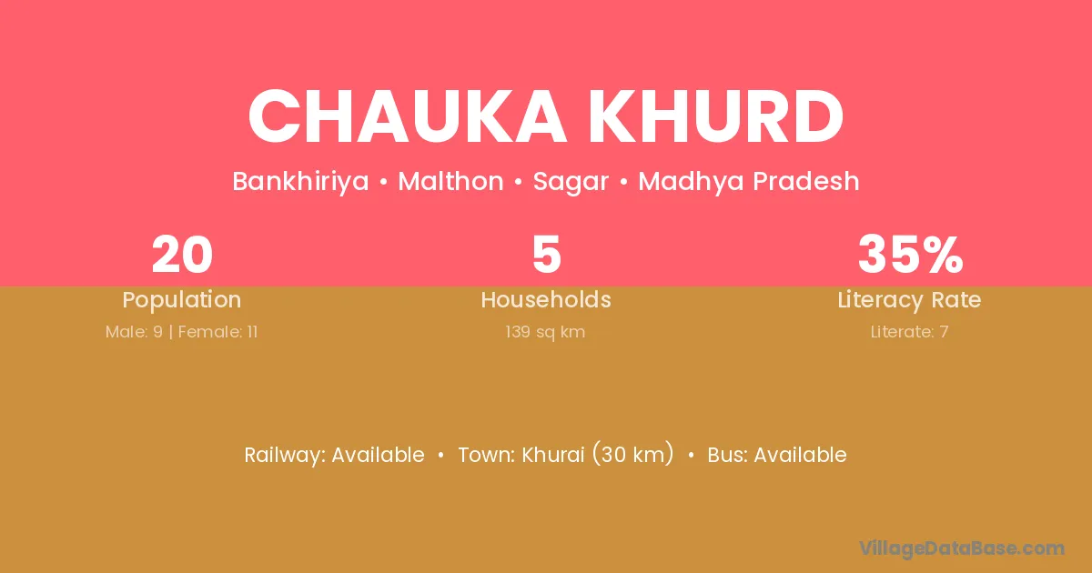 Khurai (30 km) is the nearest town to Chauka Khurd village for major economic activities and is located approximately 30 km away.