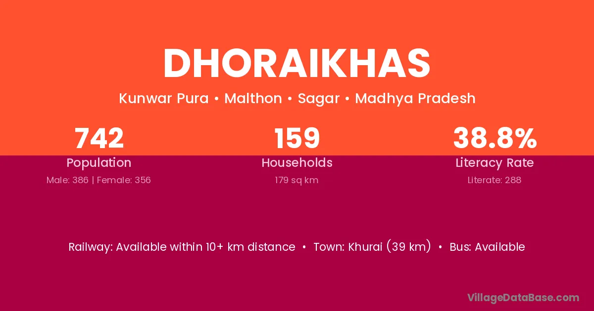 Khurai (39 km) is the nearest town to Dhoraikhas village for major economic activities and is located approximately 39 km away.