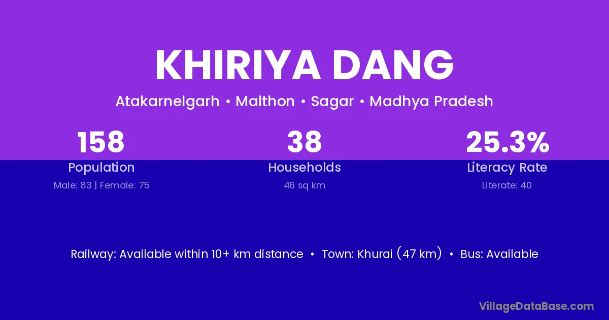 Khiriya Dang village has a total population of 158 people, of which 83 are males and 75 are females.