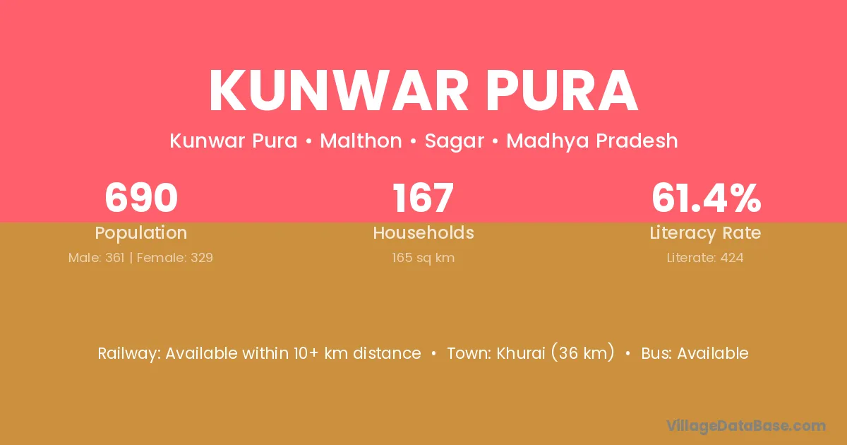 Khurai (36 km) is the nearest town to Kunwar Pura village for major economic activities and is located approximately 36 km away.