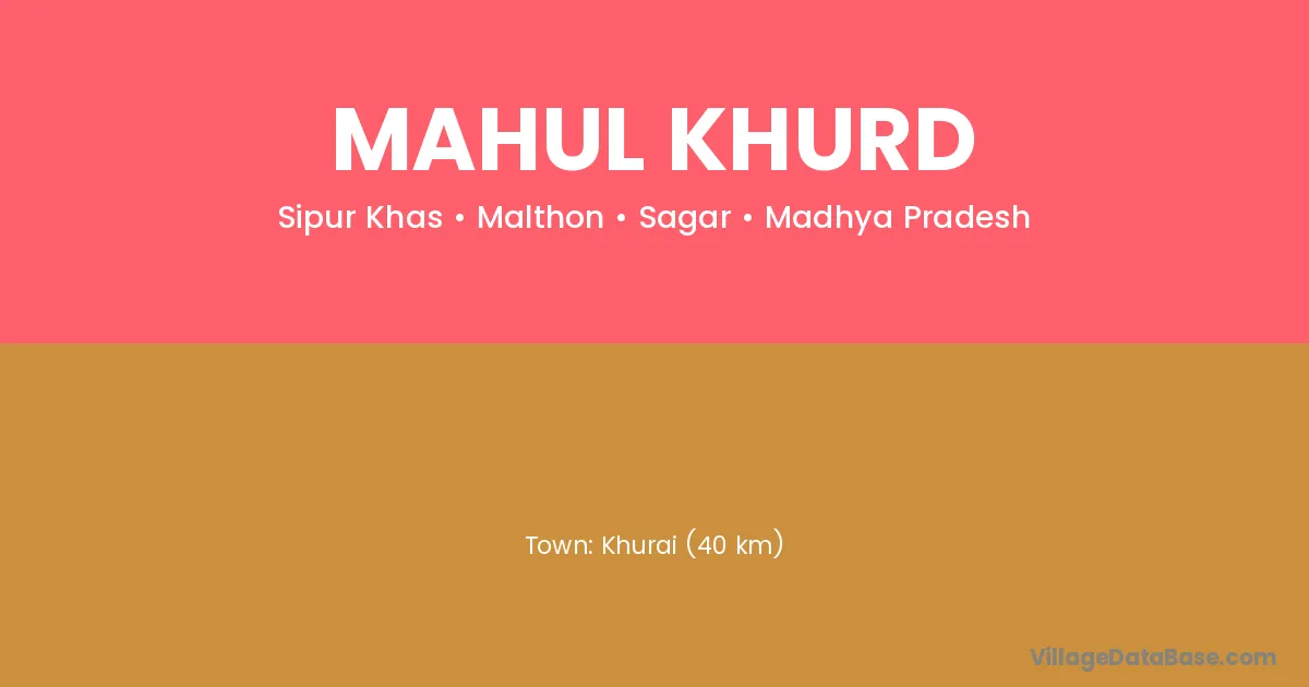 Khurai (40 km) is the nearest town to Mahul Khurd village for major economic activities and is located approximately 40 km away.