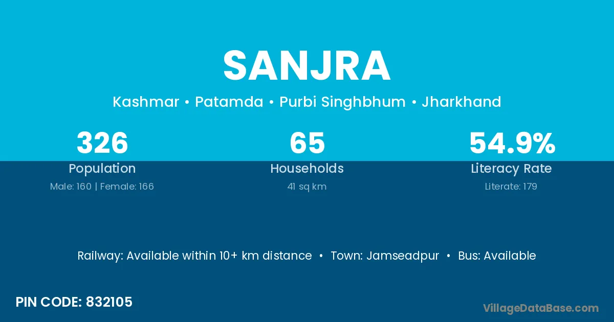 Khurai (42 km) is the nearest town to Sanjra village for major economic activities and is located approximately 42 km away.