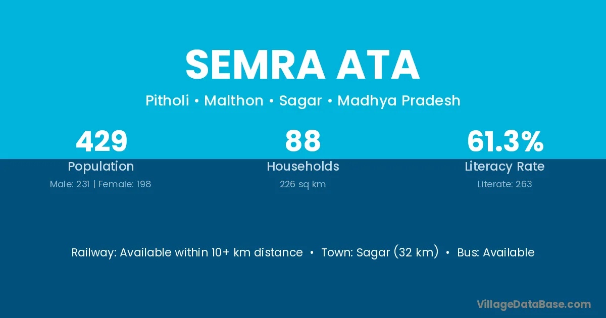 Sagar (32 km) is the nearest town to Semra Ata village for major economic activities and is located approximately 32 km away.