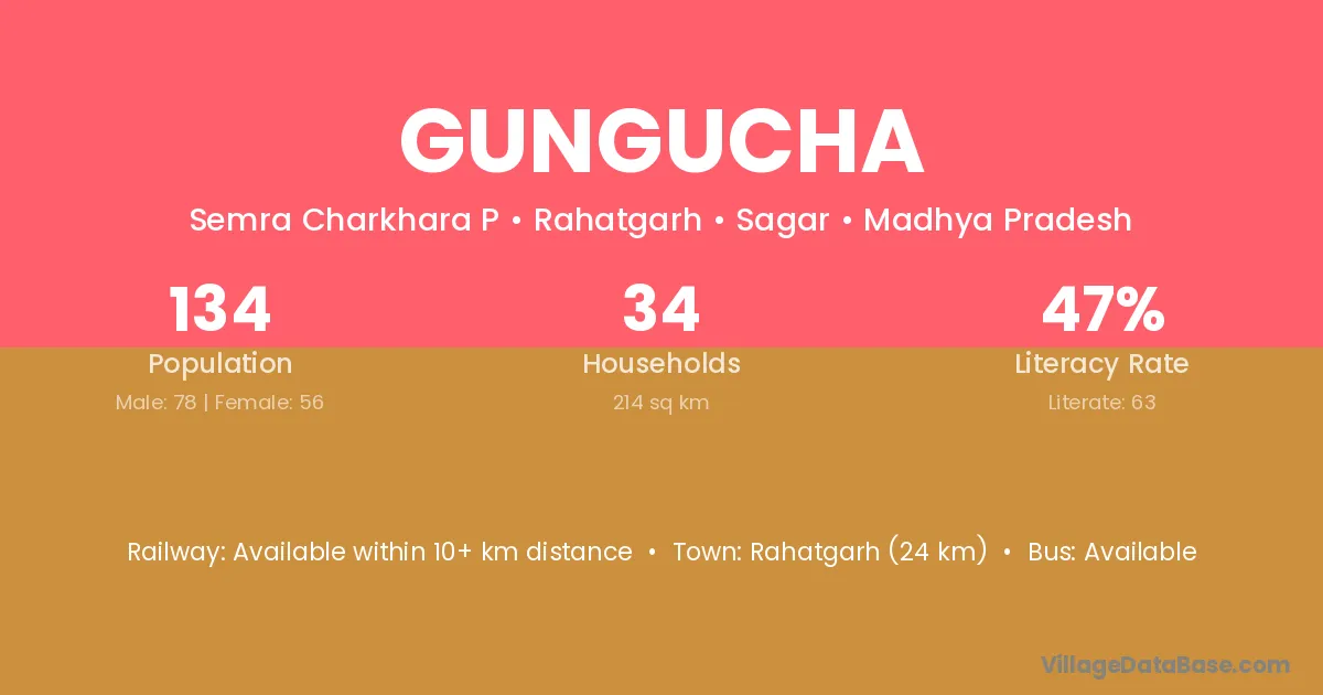 Rahatgarh (24 km) is the nearest town to Gungucha village for major economic activities and is located approximately 24 km away.