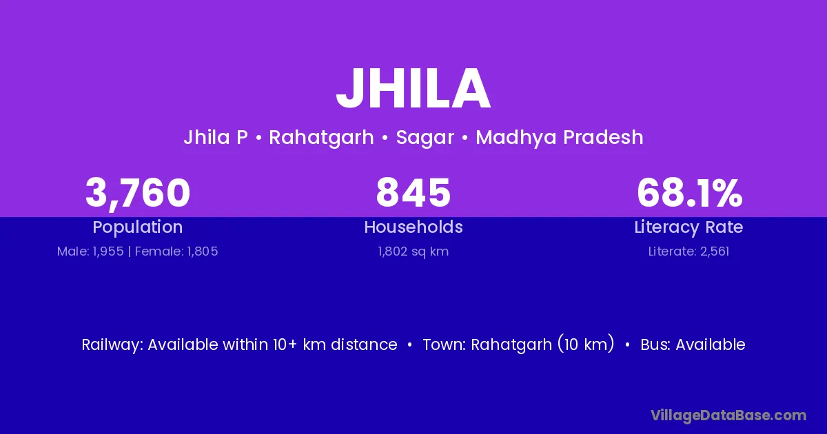 Rahatgarh (10 km) is the nearest town to Jhila village for major economic activities and is located approximately 10 km away.