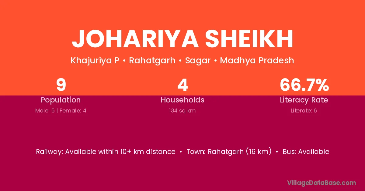 Rahatgarh (16 km) is the nearest town to Johariya Sheikh village for major economic activities and is located approximately 16 km away.
